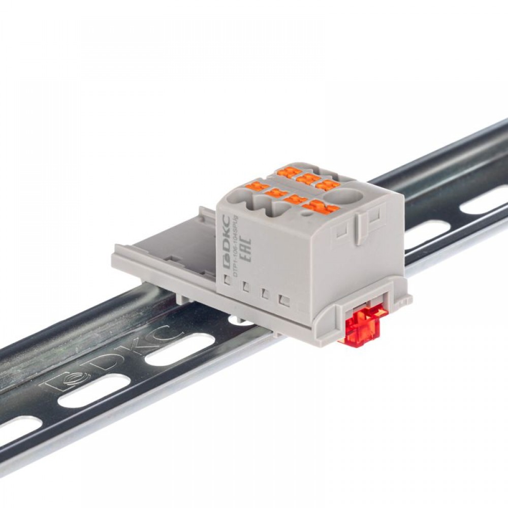 • Блок распределительный с вертикал. адаптером на рейки шир. 15/35мм зажим push-in 1 ввод 6кв.мм 6 точек подключения 2.5кв.мм сер. DKC DTP1-106-104SPUG-V