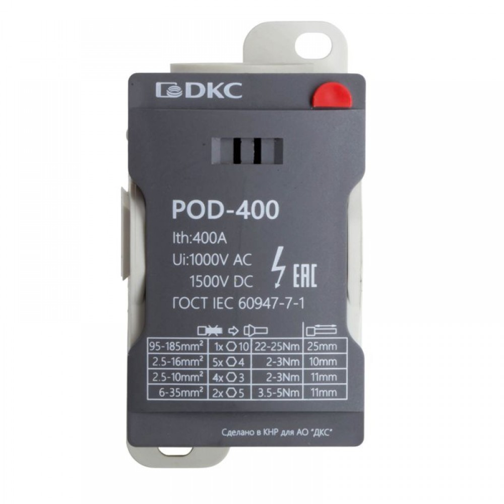 Блок распределительный винтовой зажим 1х185кв.мм 2х35кв.мм 5х16кв.мм 4х10кв.мм DKC POD-400