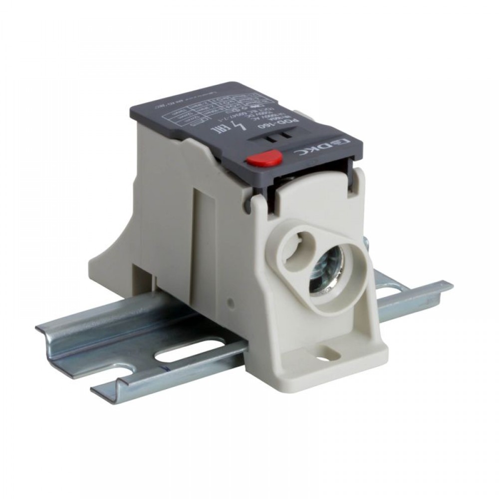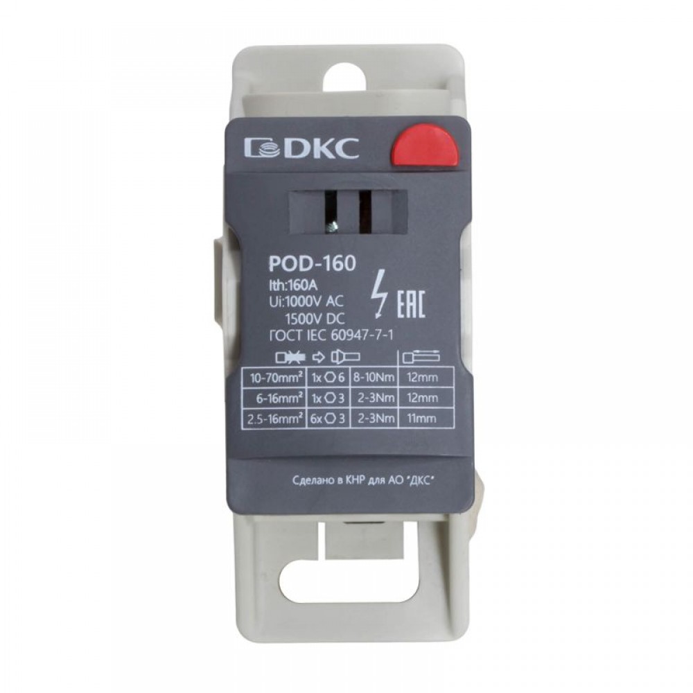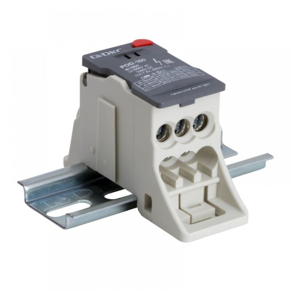 Распределительный блок POD-160 с винтовым зажимом служит для соединения и распределения многожильных или обжатых наконечником гибких проводников в электрических щитах. Установка на DIN-рейку высотой 35 мм или монтажную плату. Боковой штифт обеспечивает стыковку блоков между собой. На крышке распределительного блока нанесена ключевая информация, а также есть паз для маркировки NUTB5. В комплект входит цветная пластиковая маркировка (синий, зеленый, красный, желтый) и самоклеящаяся (L1, L2, L3, N, заземление, круг). Корпус выполнен из полиамида с классом горючести V0 UL-94. Степень защиты – IP20. Цвет – серый, 1 ввод с сечением 10-70 мм2, 7 точек подключения (выводов) с номинальным сечением проводников 2,5-16 мм2. Габариты (В?Ш?Г) – 48,5?31,1?76,5 мм.