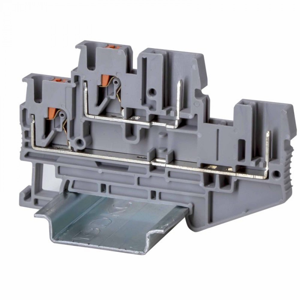 Клемма двухуровневая проходная под вставной штекер зажим push-in; 4 точки подключения; 2.5кв.мм сер. DKC VPRTT-2.5-2P