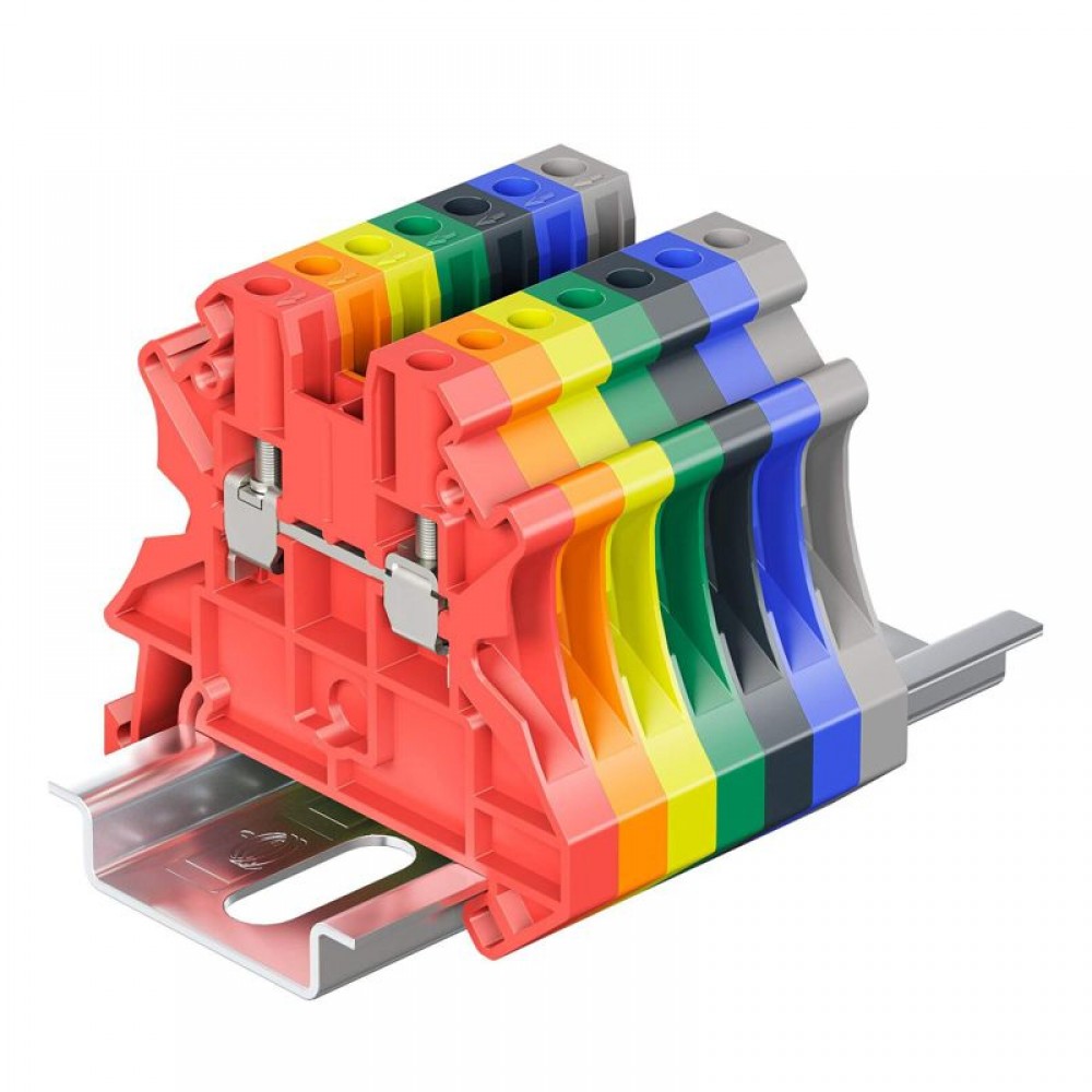 Проходная клемма с винтовым зажимом предназначена для соединения двух проводников. Монтаж на DIN-рейку OMEGA. Температура эксплуатации от -40 до +105 °C. Корпус выполнен из ПА 6.6 с классом горючести V0 UL-94.