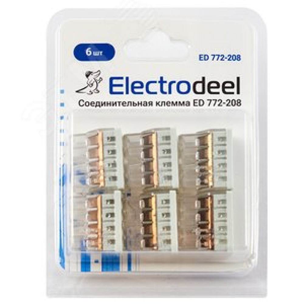 Клемма соединительная 8-контактная Elеctrodeel ED 772-208-b6, сечение 0,5-2,5 мм2, 24А/450В (упаковка 6 штук)