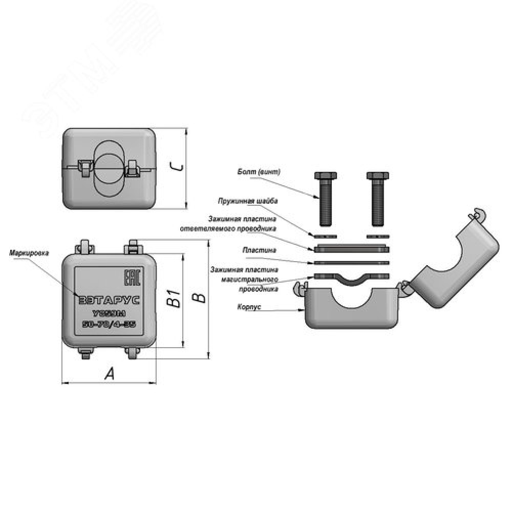 Технические характеристики Сжим ответвительный У-733 16-35/1,5-10 (уп. 1шт.) ЗЭТАРУС