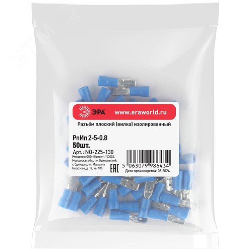 Технические характеристики Разъем плоский NO-225-130 РпИп 2-5-0.8 изолированный «вилка» (упаковка 50 штук)