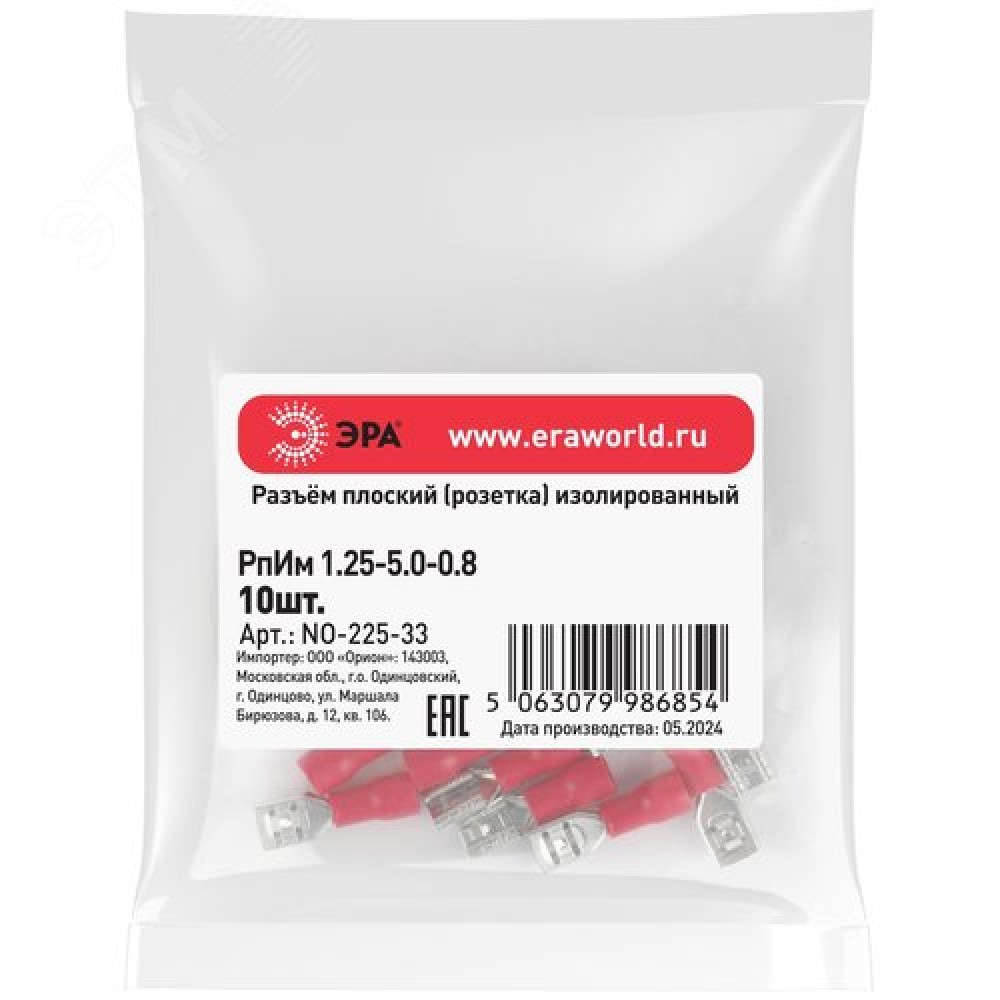 Технические характеристики Разъем плоский NO-225-33 РпИм 1.25-5.0-0.8 изолированный «розетка» (упаковка 10 штук)