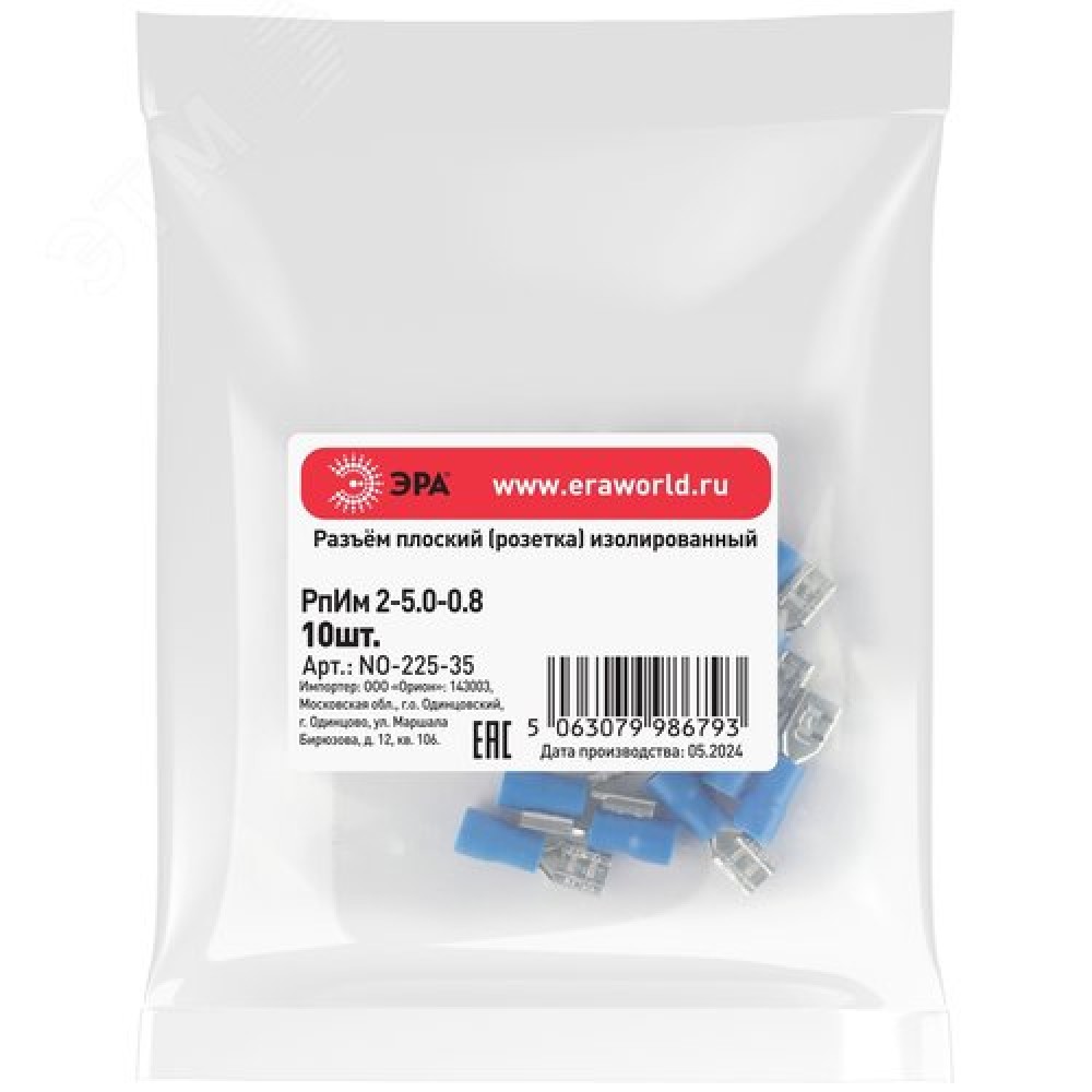 Технические характеристики Разъем плоский NO-225-35 РпИм 2-5.0-0.8 изолированный «розетка» (упаковка 10 штук)