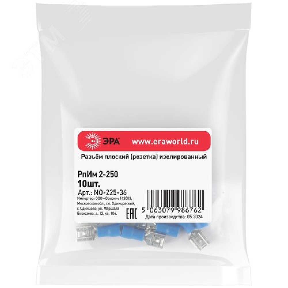 Технические характеристики Разъем плоский NO-225-36 РпИм 2-250 изолированный «розетка» (упаковка 10 штук)