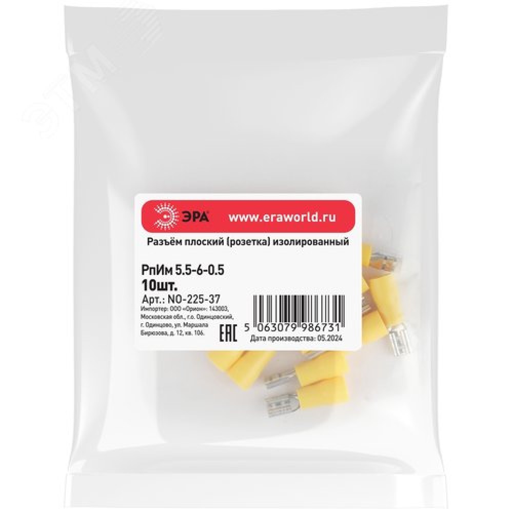 Технические характеристики Разъем плоский NO-225-37 РпИм 5.5-6-0.5 изолированный «розетка» (упаковка 10 штук)