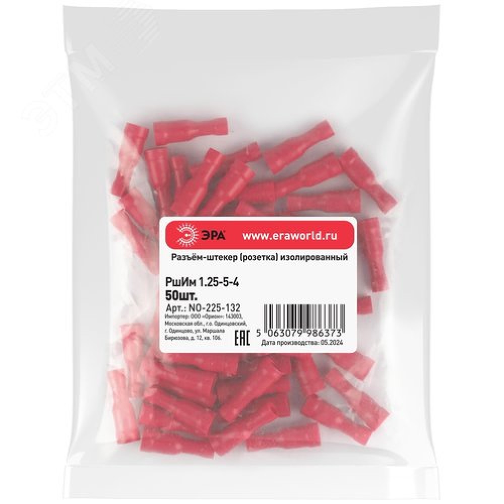 • Разъем-штекер NO-225-132 РшИм 1.25-5-4 изолированный «розетка» (упаковка 50 штук)