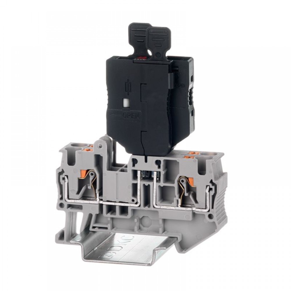 Вставка для предохранителя для клемм с размыкателем TUR-4-MT, TUR-4-MT-P-P, VPR-4-MT, VPR-4-TG, IPR-4-MT, вставляется сверху, для некоторых клемм необходимо извлечь размыкатель перед установкой вставки для предохранителя PP-FUHL. Предназначена для защиты цепи от перегрузки, короткого замыкания и коммутации проводников сечением от 0,2 до 6 мм2. Материал – полиамид, класс негорючести – UL94 V0, цвет – черный. Габариты (В?Ш?Г) – 55?6,5?23 мм.