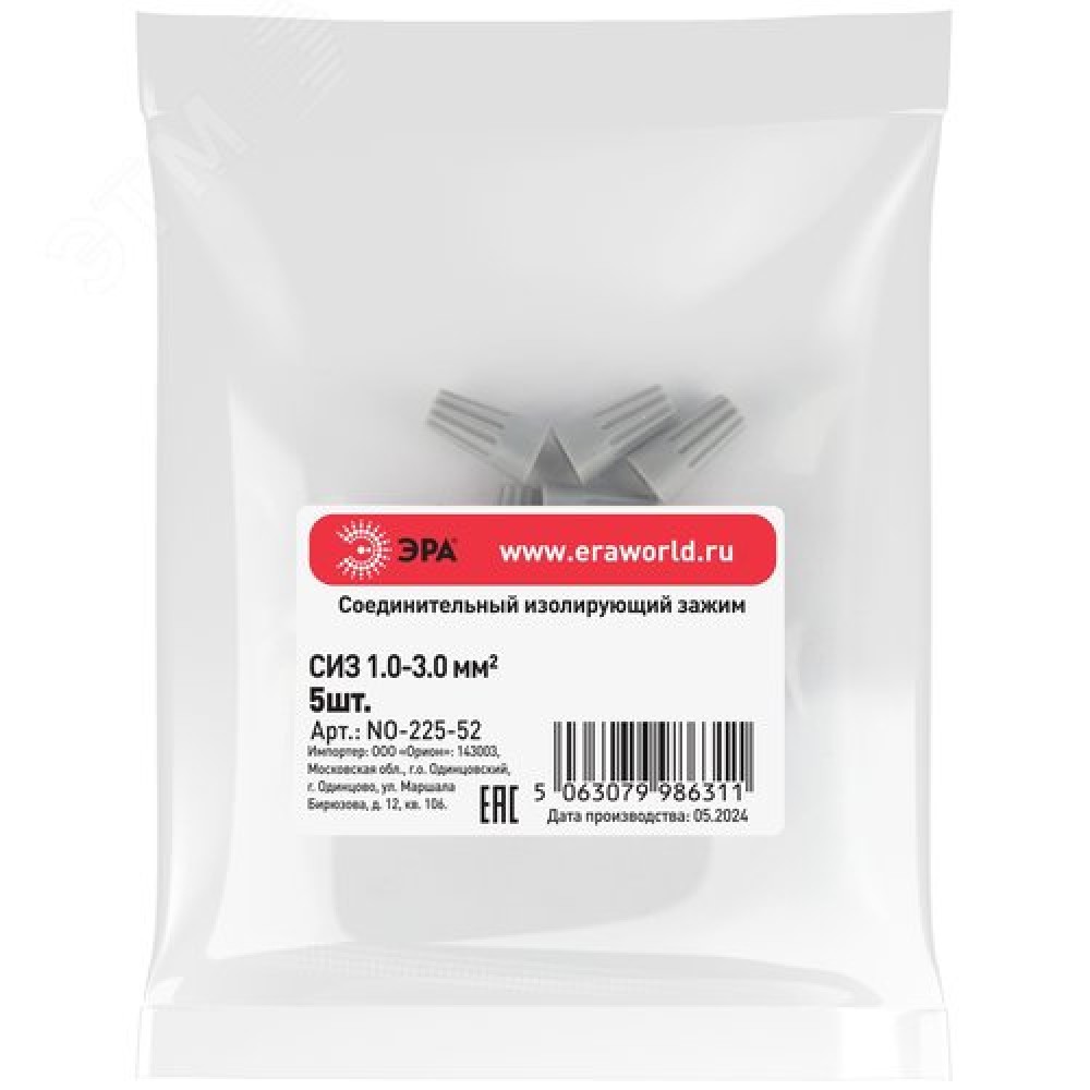 Технические характеристики Зажим изолирующий соединительный NO-225-52 СИЗ-1 (1,0-3,0 мм2) серый (упак. 5 шт.)