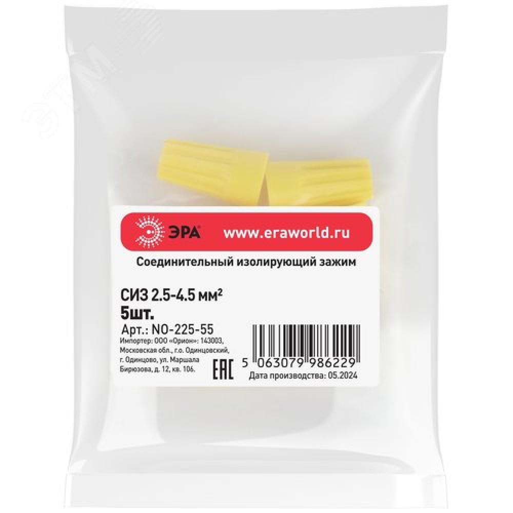 Зажим изолирующий соединительный NO-225-55 СИЗ-4 (2,5-4,5 мм2) жёлтый (упак. 5 шт.)