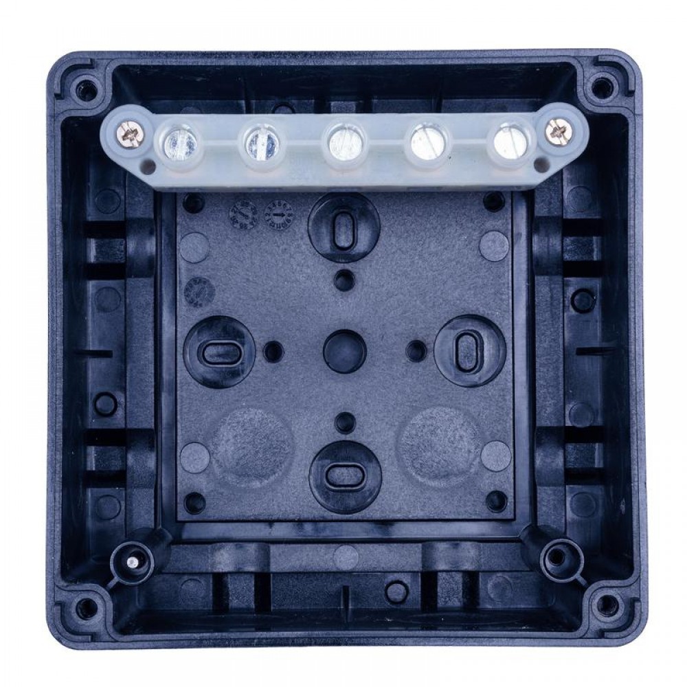 Коробка распределительная атмосферостойкая JB-60-BL предназначена для соединения силовых и контрольных кабелей, а также для монтажа электронного оборудования. Степень защиты оболочки IP65. Ударопрочная. Применяемые для изготовления данной коробки материалы стойки к воздействию УФ-лучей, слабым растворам кислот и щелочей, спиртам, минеральным и растительным маслам. Высокое расположение клемм повышает удобство и обеспечивает быстрый монтаж соединений. На боковых стенках коробки предусмотрены 7 выбивных отверстий под кабельные вводы М20/М25. На задней стенке предусмотрены 2 выбивных отверстия под кабельные вводы М16. Для подвода питания могут применяться небронированные силовые кабели с сечением жил от 1,5 до 6 кв.мм.
