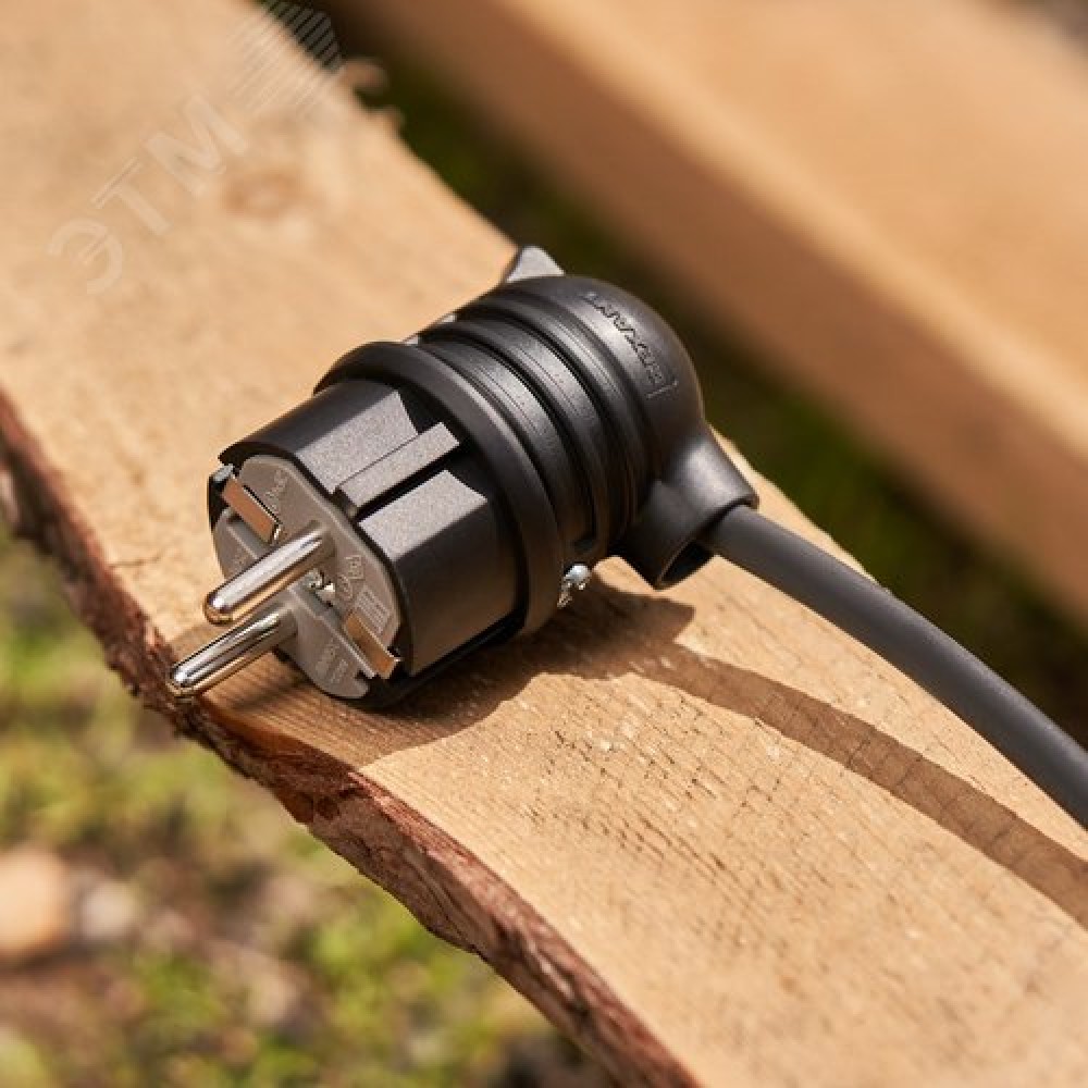 Технические характеристики Вилка влагозащищенная угловая с заземлением 16А IP44 каучук, черная