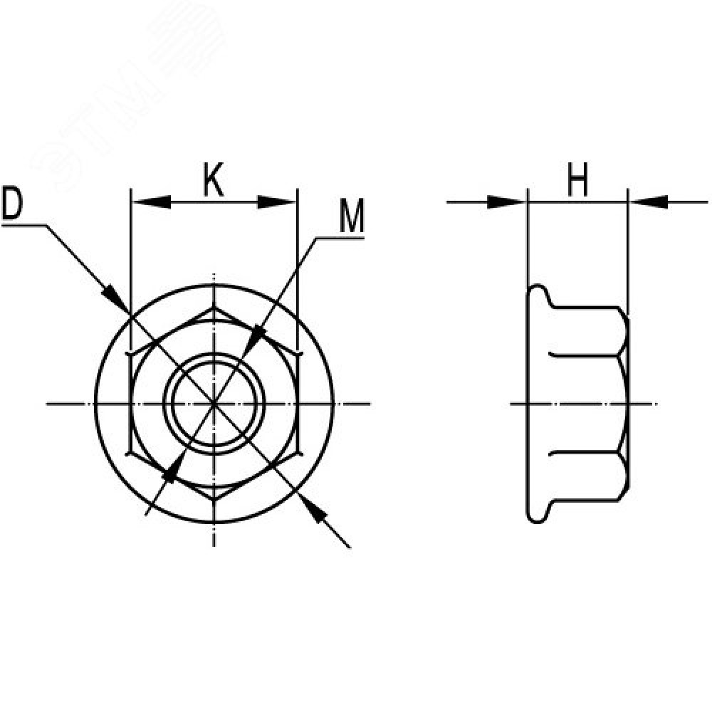 Технические характеристики Гайка М6 насечка препятствующая откручиванию inox