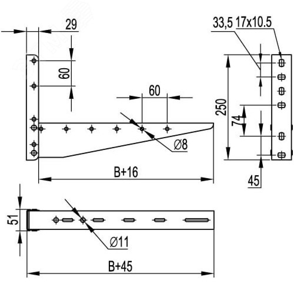 Технические характеристики Консоль с опорой ML 600 мм
