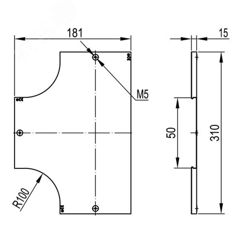 Технические характеристики Крышка на ответвитель DPT Т-образный горизонтальный осн.50 в комплекте с метизами и пластинами PTCE