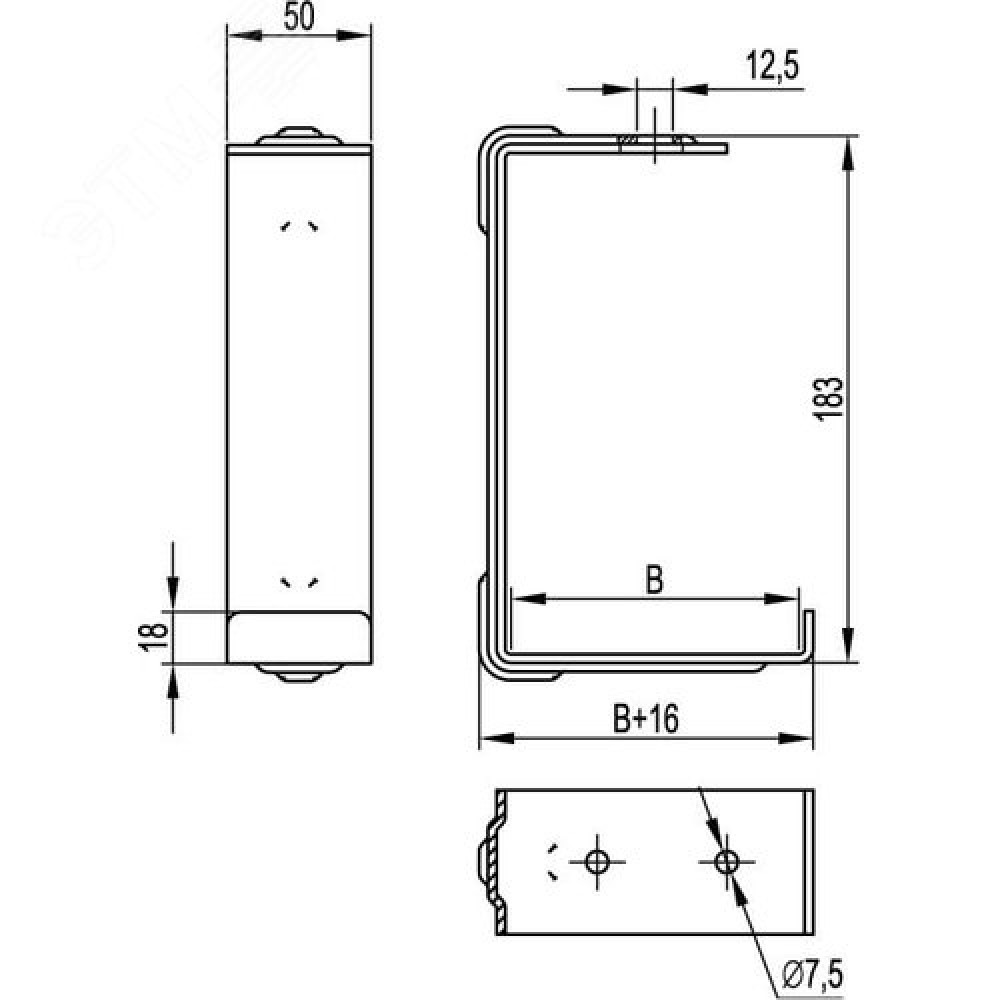 Технические характеристики Скоба CS на лоток основание 100 мм