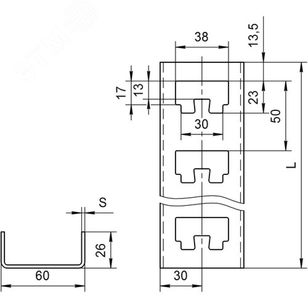 Технические характеристики Стойка кабельная К1152 УТ1,5 (L800 мм s 2,5 мм) горячеоцинкованный