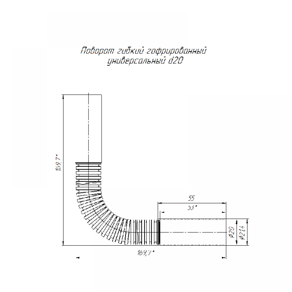 Технические характеристики Поворот гибкий гофрированный универсальный d20мм Промрукав PR13.0206