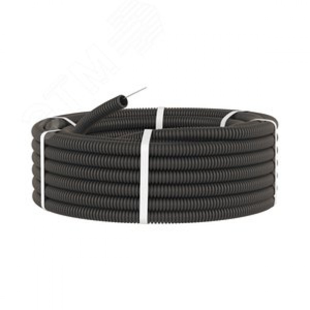 Труба гофрированная ПНД 50мм с протяжкой легкая черная 15м
