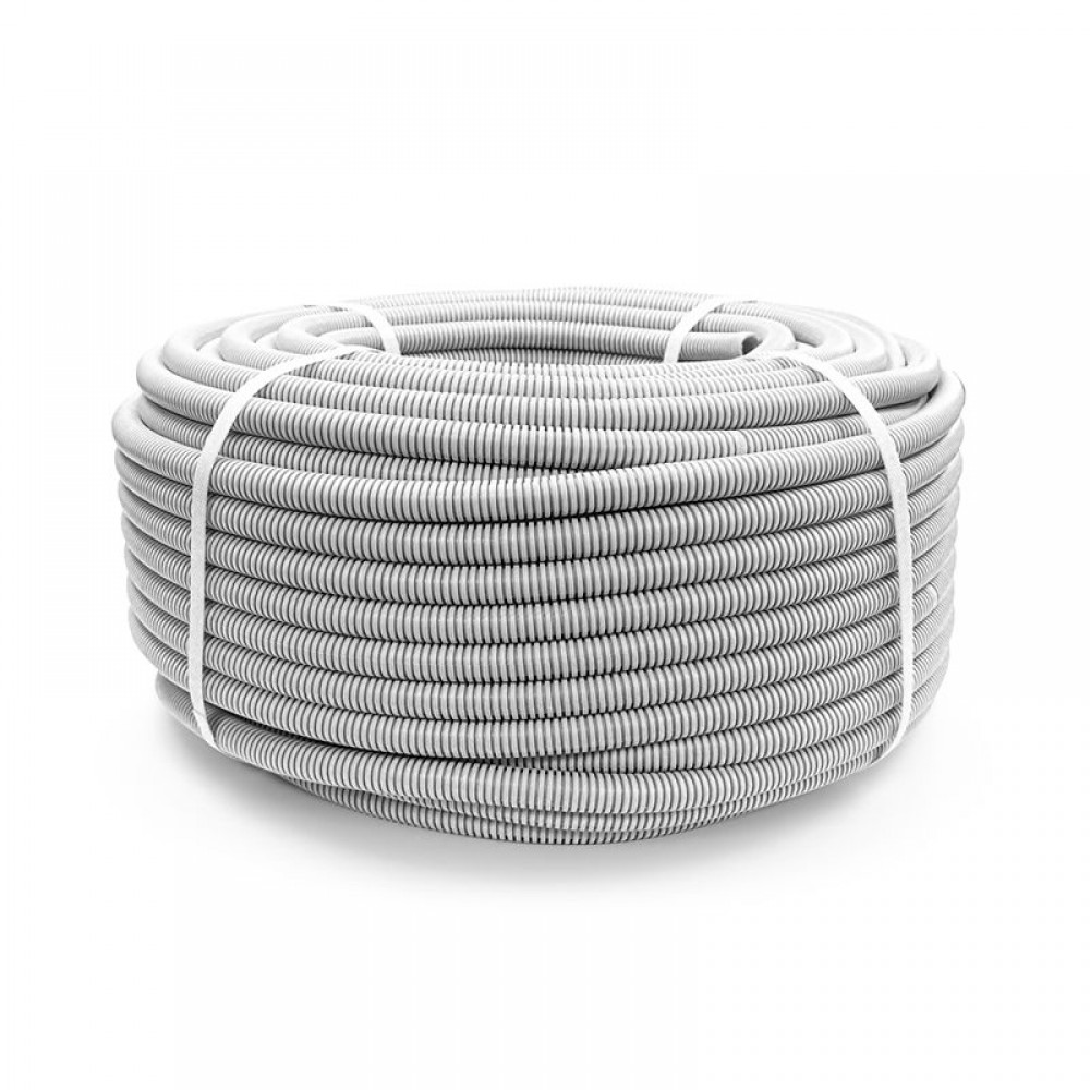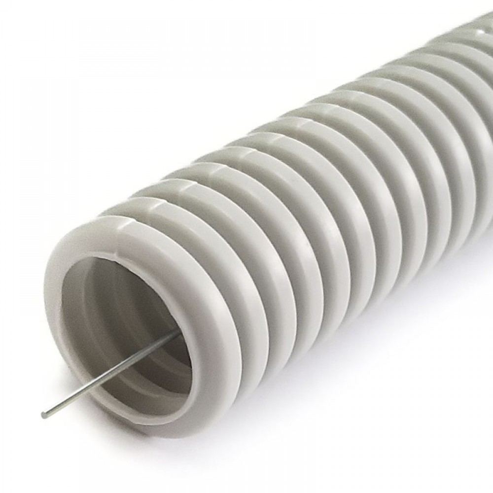 Труба гофрированная ПНД легкая d20мм с протяжкой 350 Н безгалоген. (HF) стойкая к УФ сер. (уп.100м) Промрукав PR02.0130