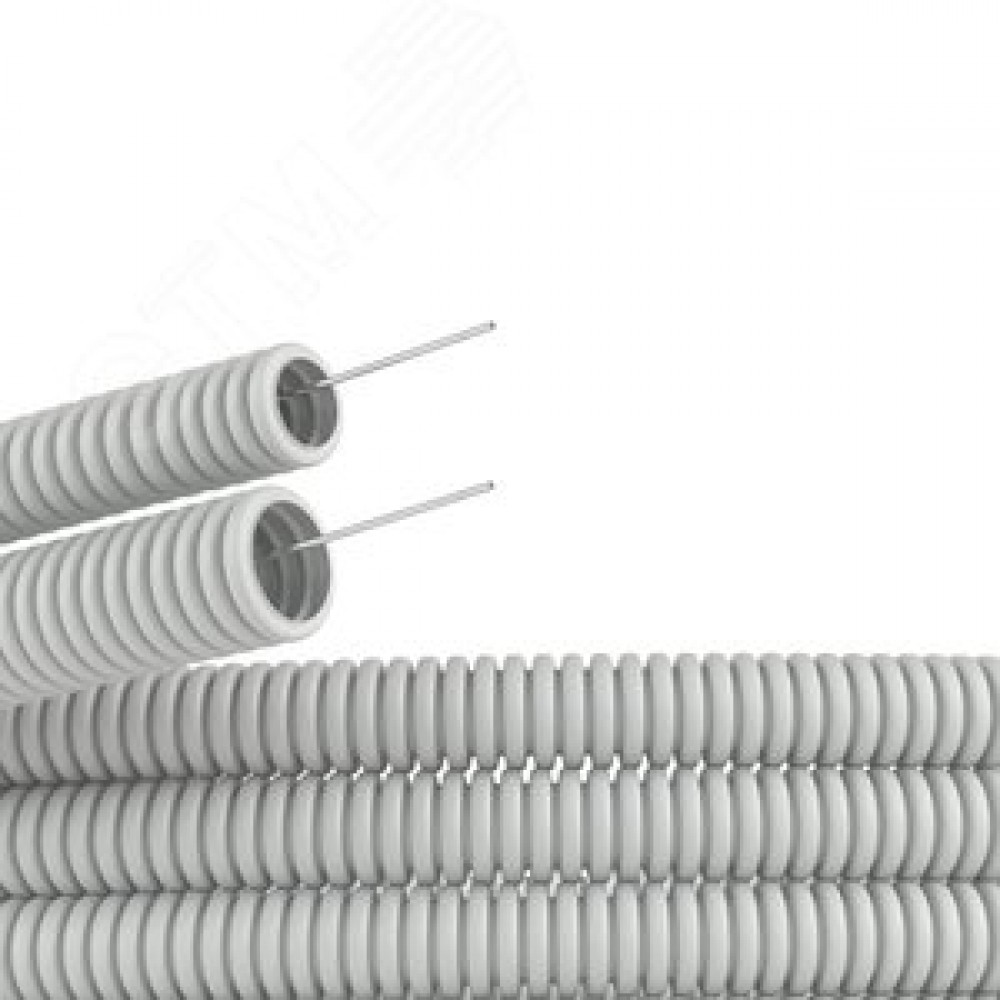 Труба гофрированная ПВХ 16 мм с протяжкой легкая серая (25м) 0 18 ₽