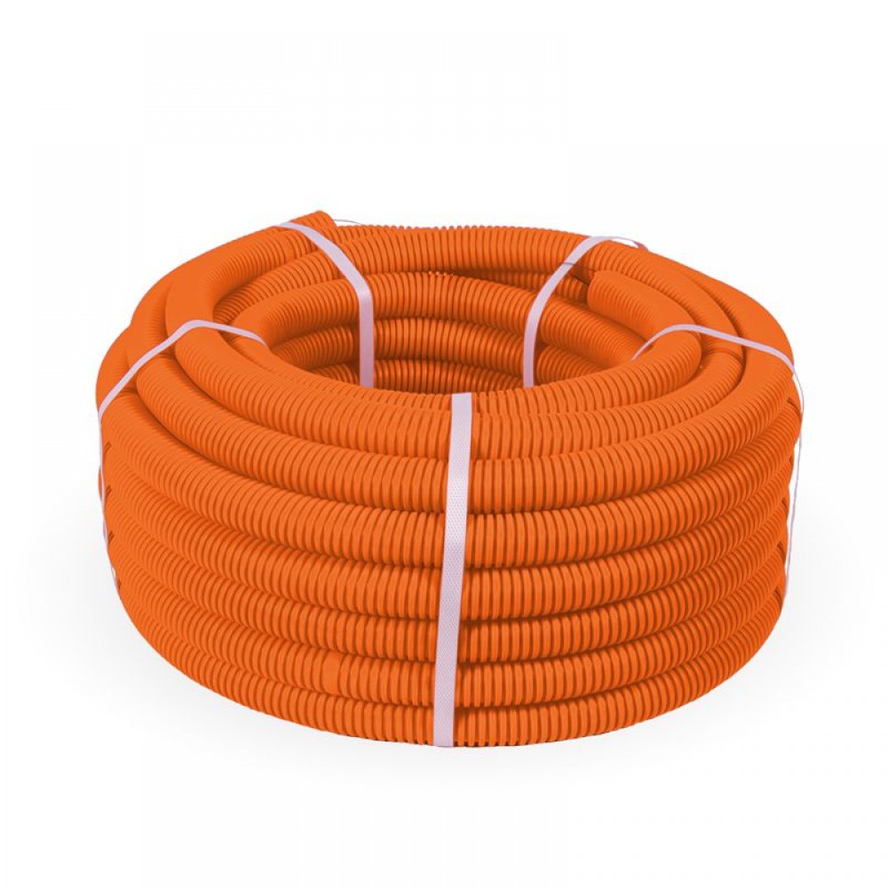 Труба гофрированная ПВХ легкая d20мм с протяжкой 350 Н оранж. (уп.100м) Промрукав PR01.0131