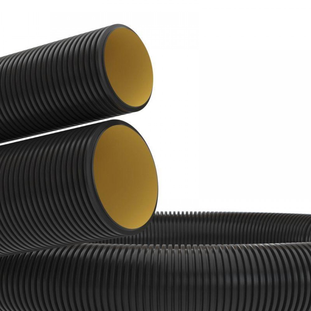 Двустенные гибкие электротехнические трубы могут использоваться как для прокладки кабеля, так и для организации ливневой организации. В первом случае удобнее использовать трубы с протяжкой - она позволяет легко проложить кабель во внутреннем пространстве трубы. Труба имеет высокую кольцевую жесткость. Диаметр 50 мм, поставляется бухтами по 100 метров. Материал - ПНД.