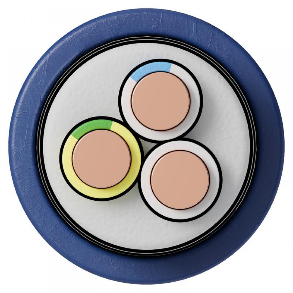 Кабель силовой бронированный с пониженным дымо- и газовыделением, с круглыми медными жилами, сердечник которого представляет собой медные скрученные, изолированные поливинилхлоридным пластикатом, жилы, имеющие отличительную расцветку по изоляции, поверх которых выпрессован заполнитель междужильного пространства, выполненный из полимерной композиции с улучшенными свойствами по пожаробезопасности и придающий кабелю в сечении круглую форму. Кабель предназначен для передачи и распределения электроэнергии в стационарных установках на номинальное переменное напряжение 0,66кВ, для прокладки, с учетом объема горючей нагрузки, во внутренних электроустановках, а также в зданиях, сооружениях и закрытых кабельных сооружениях, при наличии опасности механических повреждений в процессе эксплуатации. -изготовлено по заказу Русский Свет - лидера на рынке КПП