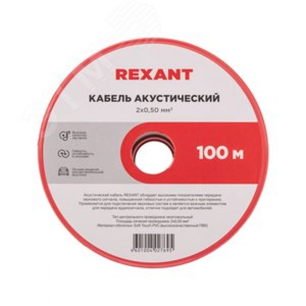 Технические характеристики Кабель акустический 2х0,50мм2, красно-черный, 100 м
