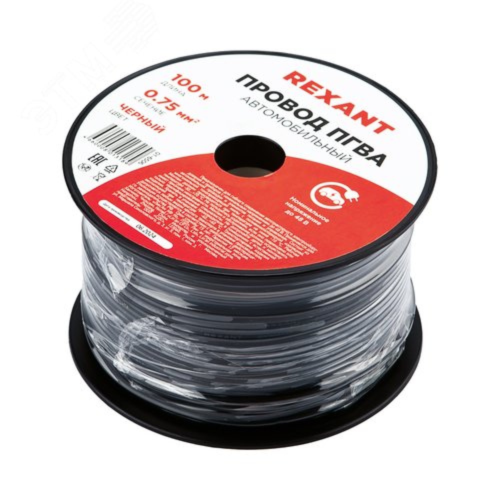 Технические характеристики Провод ПГВА 1х0.75 мм2, черный, бухта 100 м,