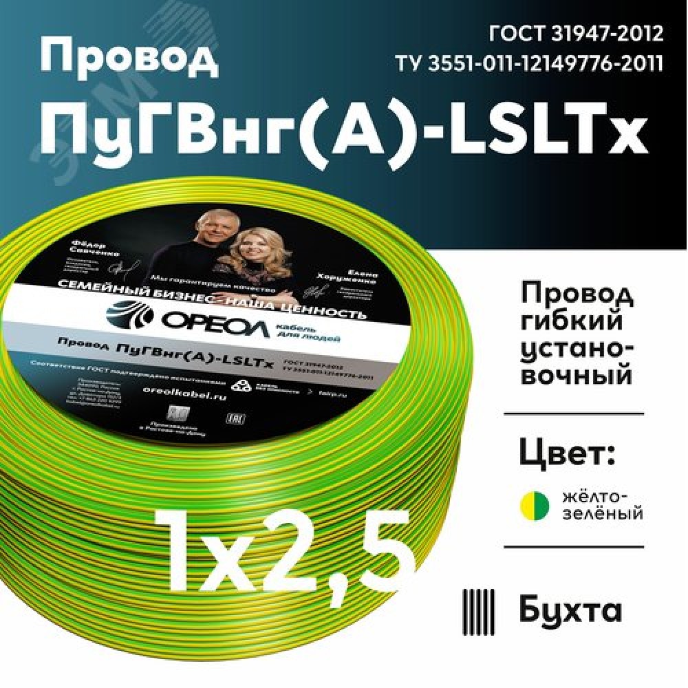 Технические характеристики Провод силовой ПуГВнг (А)-LSLTx 1х2.5желто-зеленый ТРТС