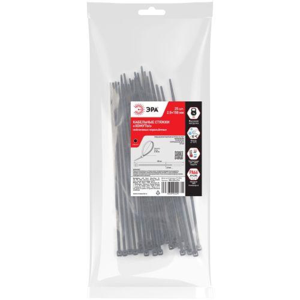 Хомут кабельный 2.5х150 черн. NO-224-214 (уп.25шт) Эра Б0066044