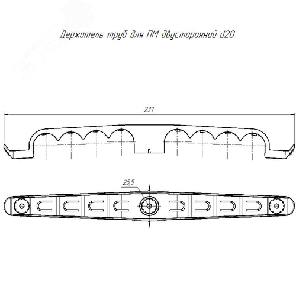 Технические характеристики Держатель труб для прямого монтажа двусторонний на 8 мест чёрный d20 (20шт/120шт уп/кор)