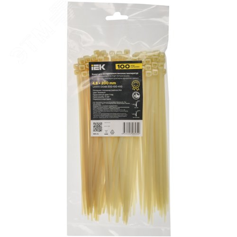 Технические характеристики Хомут P4.6 для экстремально высоких температур бежевый 4.8х200мм 100шт/упак IEK