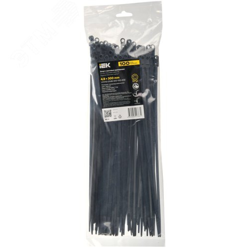 Хомут P6.6 с винтовым креплением черный 4.8х300мм 100шт/упак IEK