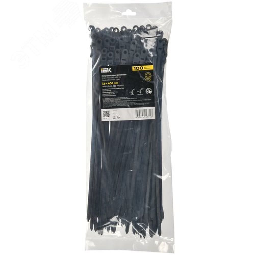 • Хомут P6.6 с винтовым креплением черный 7.6х400мм 100шт/упак IEK
