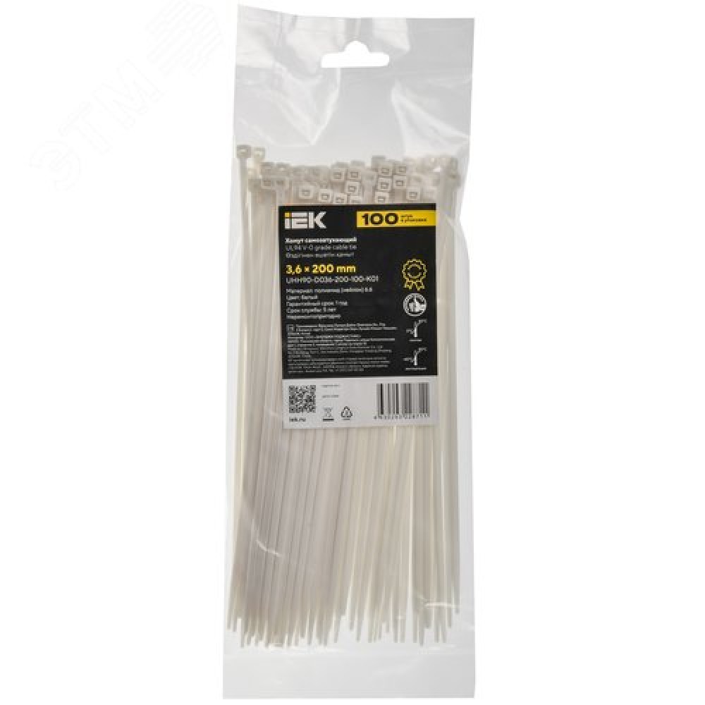 Хомут P6.6 самозатухающий белый 3.6х200мм 100шт/упак IEK