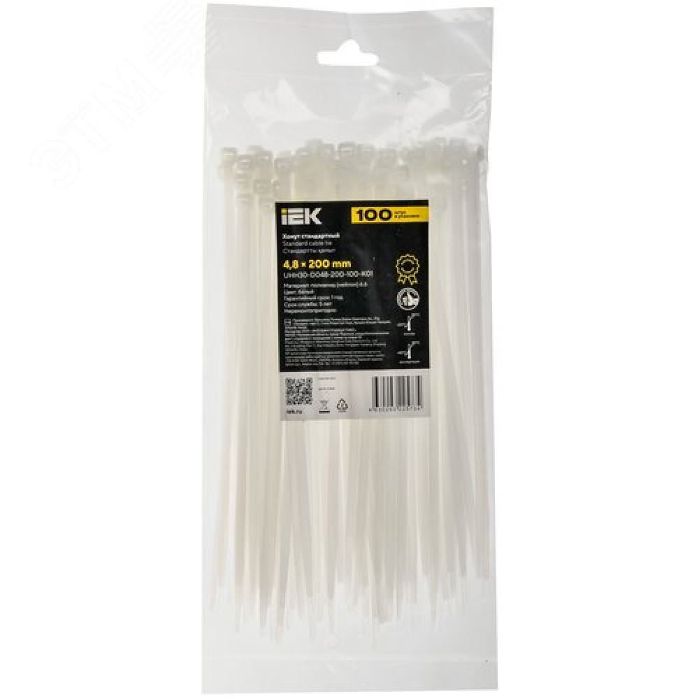 • Хомут P6.6 стандартный белый 4.8х200мм 100шт/упак IEK