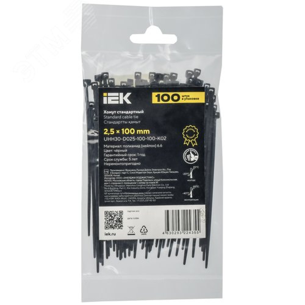 • Хомут P6.6 стандартный черный 2.5х100мм 100шт/упак IEK