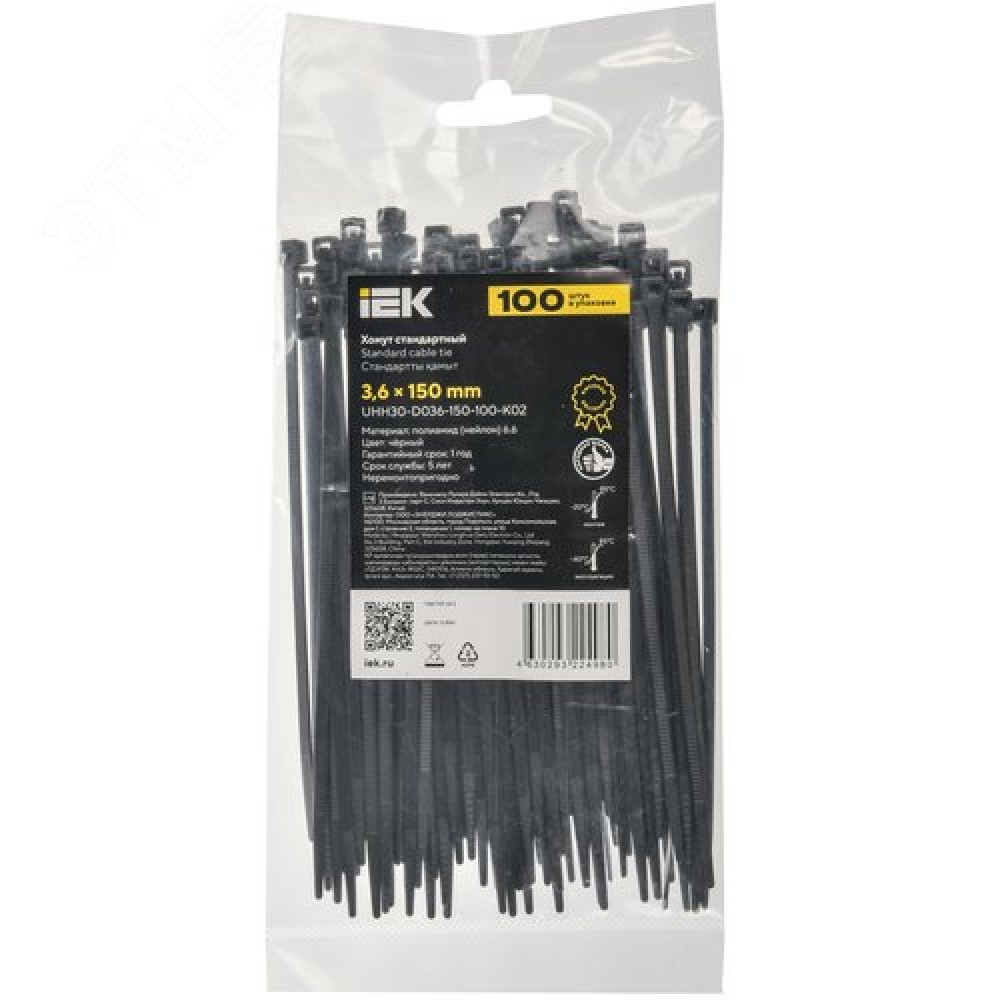 Хомут P6.6 стандартный черный 3.6х150мм 100шт/упак IEK