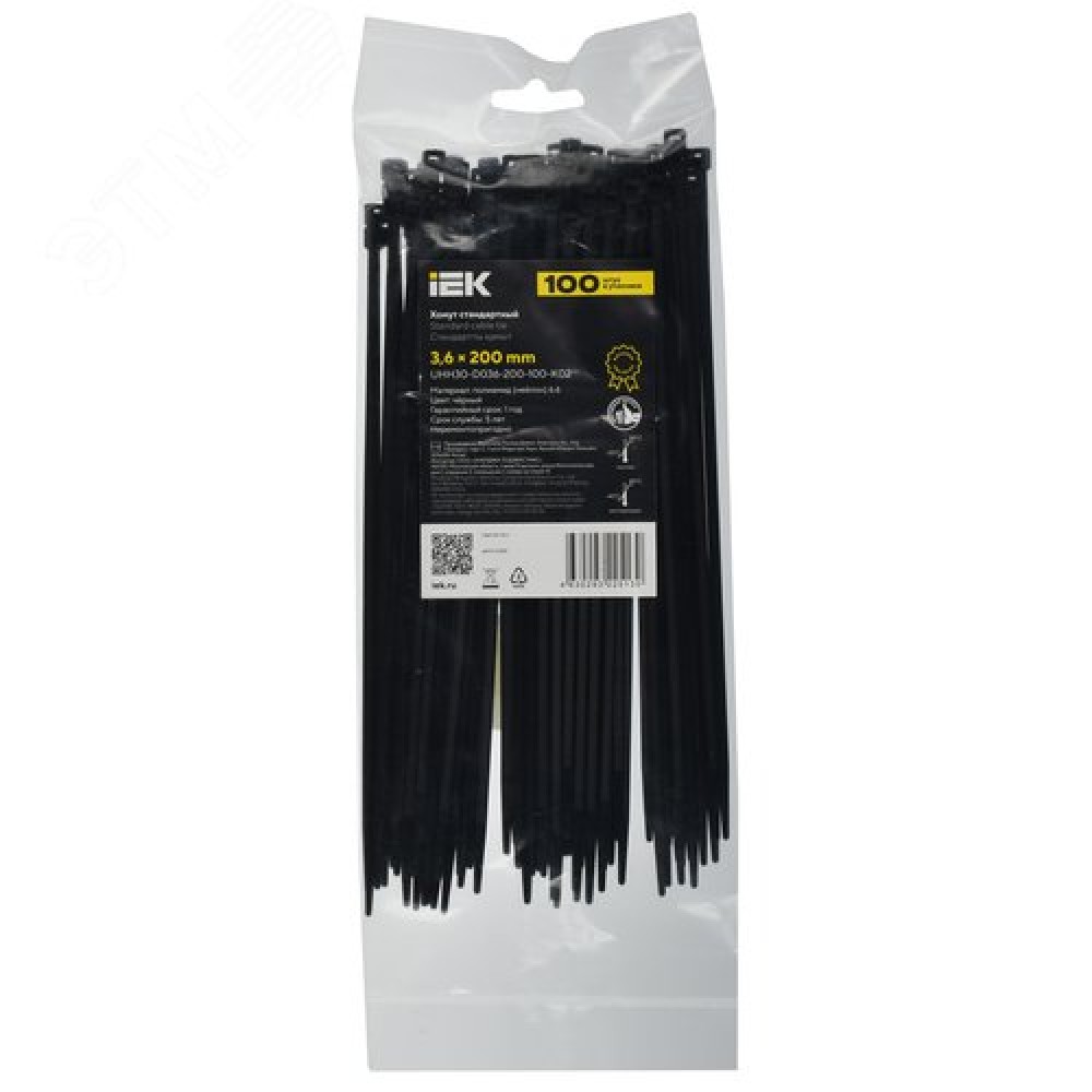 Хомут P6.6 стандартный черный 3.6х200мм 100шт/упак IEK