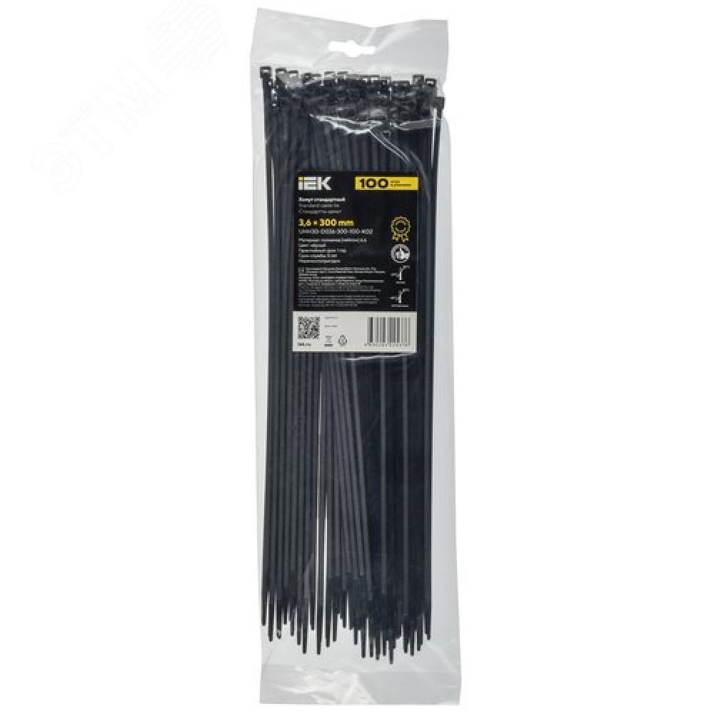 • Хомут P6.6 стандартный черный 3.6х300мм 100шт/упак IEK