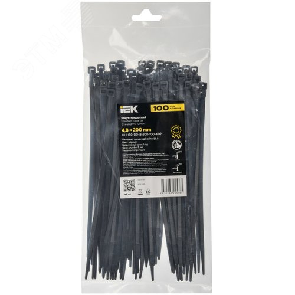 • Хомут P6.6 стандартный черный 4.8х200мм 100шт/упак IEK