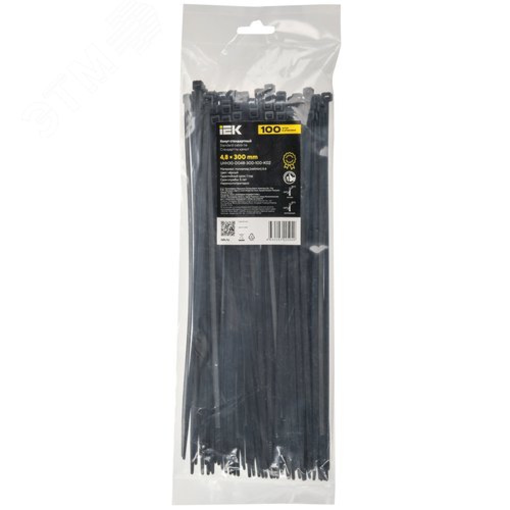 • Хомут P6.6 стандартный черный 4.8х300мм 100шт/упак IEK