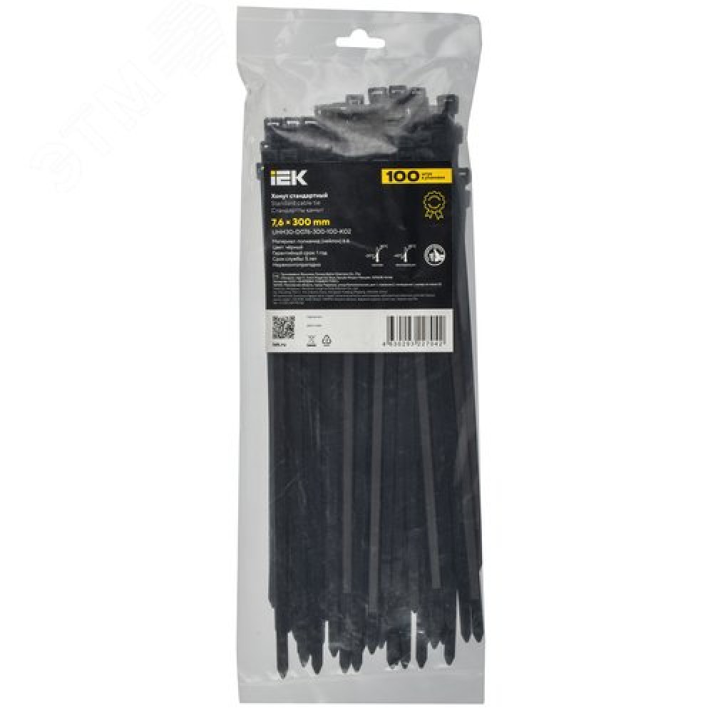 Хомут P6.6 стандартный черный 7.6х300мм 100шт/упак IEK