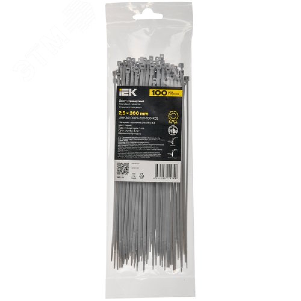 • Хомут P6.6 стандартный серый 2.5х200мм 100шт/упак IEK