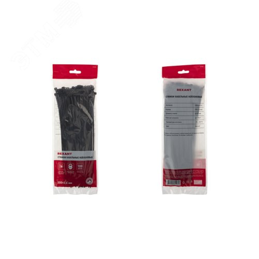 Технические характеристики Хомут-стяжка кабельная нейлоновая 250x3,6 мм, черная, упаковка 100 шт, REXANT