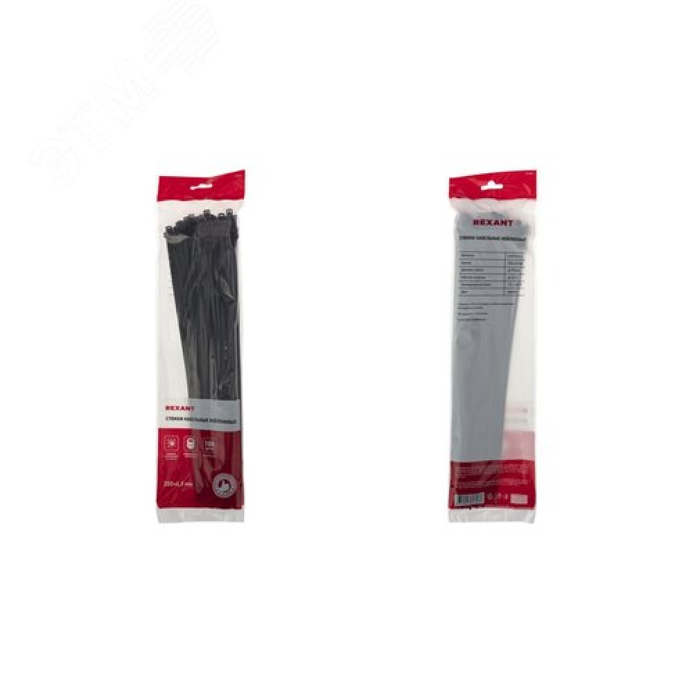 Технические характеристики Хомут-стяжка кабельная нейлоновая 350x4,8 мм, черная, упаковка 100 шт, REXANT